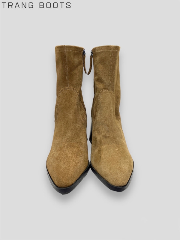 Ankle boots mũi nhọn với thiết kế đế trụ to nhưng vẫn rất tôn dáng sẽ giúp bạn dễ dàng trong việc di chuyển xa, có khóa kéo bên hông mặt trong giúp bạn thuận tiện trong việc mang chúng. Thiết kế basic cơ bản mix với tất cả các thể loại trang phục từ quần jeans đến chân váy....
