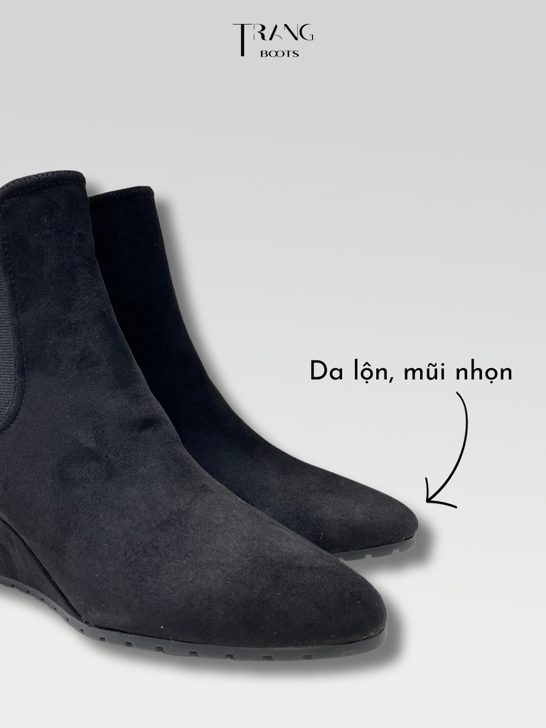 ANNE KLEIN WOMEN'S WEDGE CHELSEA BOOTS SUEDE BLACK - ANNE KLEIN WEDGE CHELSEA BOOTS DA LỘN MÀU ĐEN ĐẾ XUỒNG