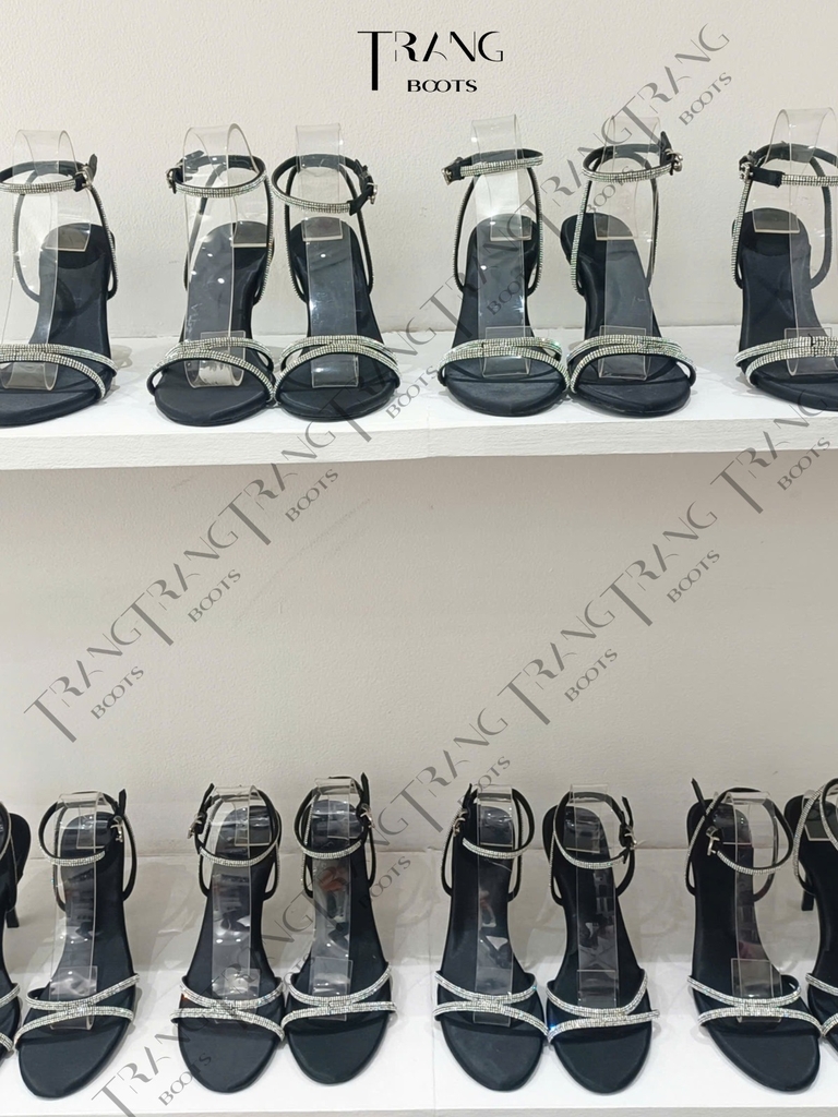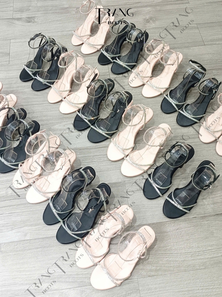 ✔ Quai cổ chân đính đá & chữ rhinestone – sang chảnh, bắt mắt