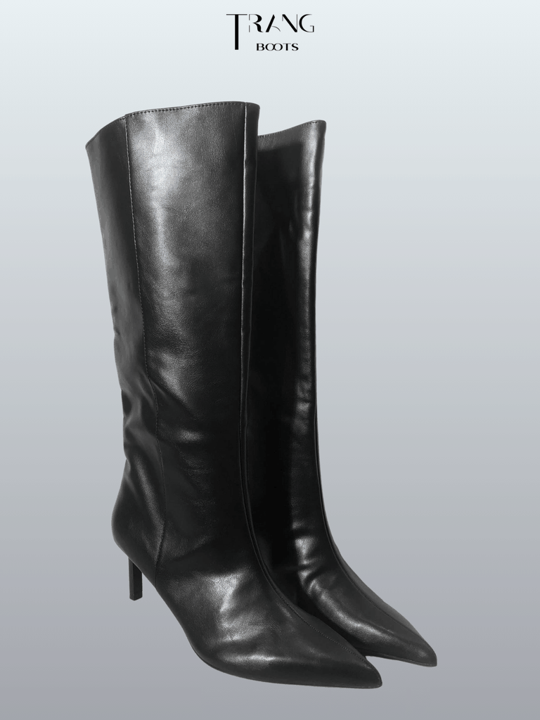Knee-high boots gót nhọn là biểu tượng của sự quyến rũ và quyền lực. Với chiều cao đến hoặc ngay dưới đầu gối kết hợp cùng phần gót nhọn thanh thoát, đôi boots này giúp tôn dáng và kéo dài đôi chân một cách ấn tượng. Chúng mang lại vẻ ngoài sành điệu, sang trọng cho mọi trang phục, từ váy liền thanh lịch đến quần skinny ôm sát, hoàn hảo cho những quý cô muốn tạo điểm nhấn táo bạo và đầy tự tin.