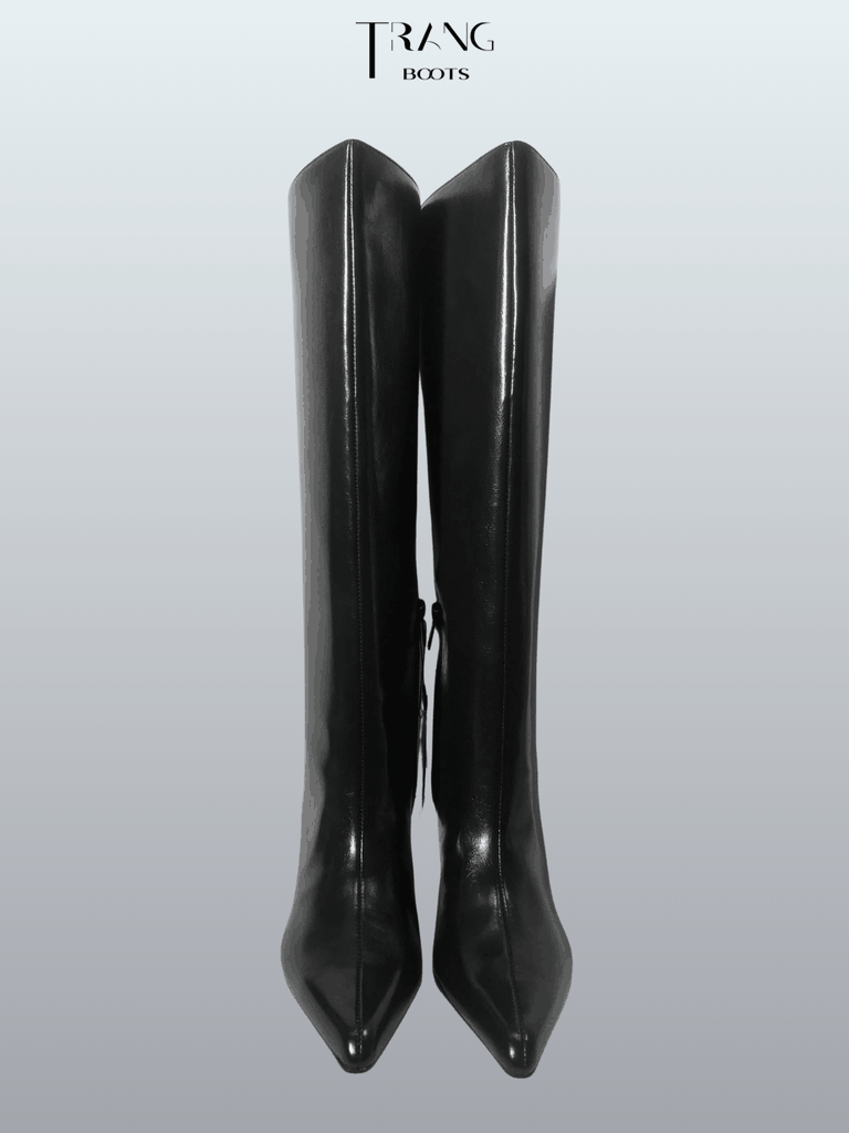 Knee-high boots gót nhọn là biểu tượng của sự quyến rũ và quyền lực. Với chiều cao đến hoặc ngay dưới đầu gối kết hợp cùng phần gót nhọn thanh thoát, đôi boots này giúp tôn dáng và kéo dài đôi chân một cách ấn tượng. Chúng mang lại vẻ ngoài sành điệu, sang trọng cho mọi trang phục, từ váy liền thanh lịch đến quần skinny ôm sát, hoàn hảo cho những quý cô muốn tạo điểm nhấn táo bạo và đầy tự tin.