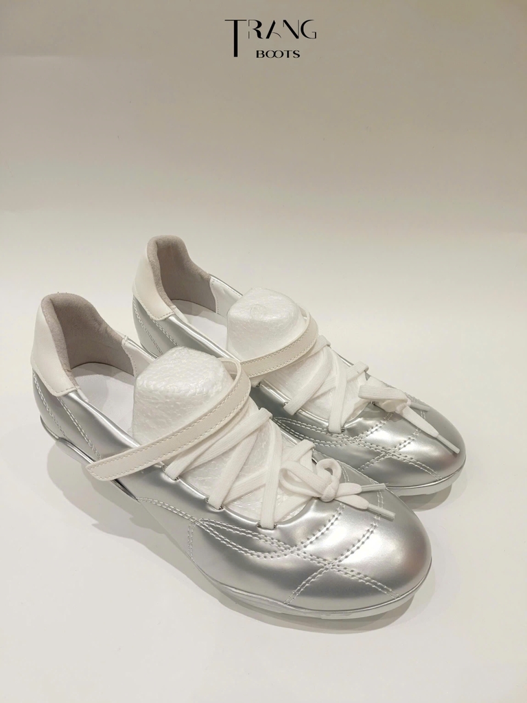 Lấy cảm hứng từ vẻ đẹp ánh bạc tương lai, mẫu giày Ballet Interstellar mang phong cách thể thao pha nét nữ tính nhẹ nhàng. Thiết kế đính nơ mềm mại kết hợp chất liệu ánh bạc nổi bật, giúp tổng thể vừa cá tính vừa thanh lịch.