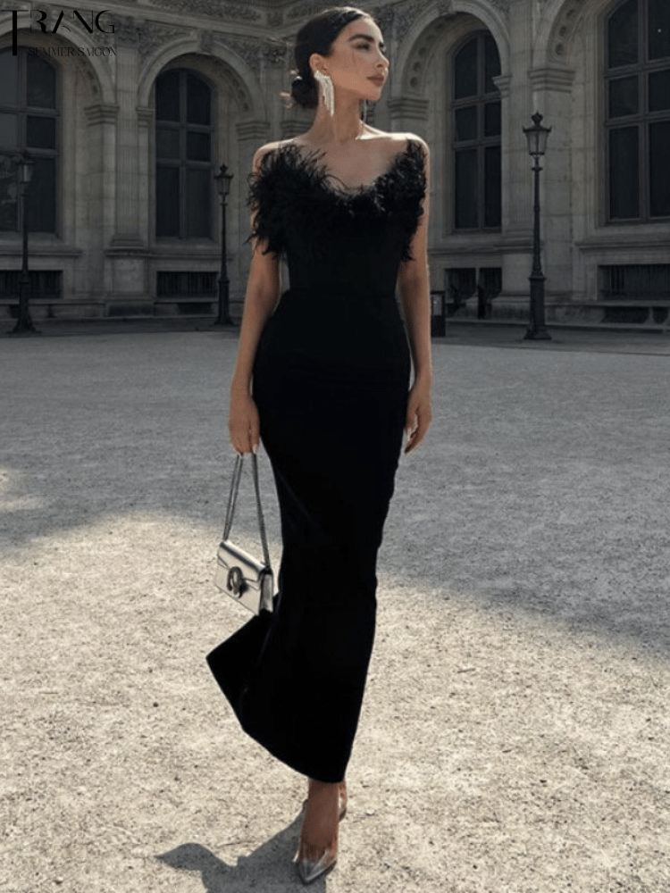 Đầm body dáng cúp ngực khoe vai hờ hững kết hợp cùng lông vũ giúp bạn thật duyên dáng. Chất liệu : thun cotton co giãn mềm mịn mát Số đo tham khảo : mẫu 1m7 / 82-64-98cm mặc S