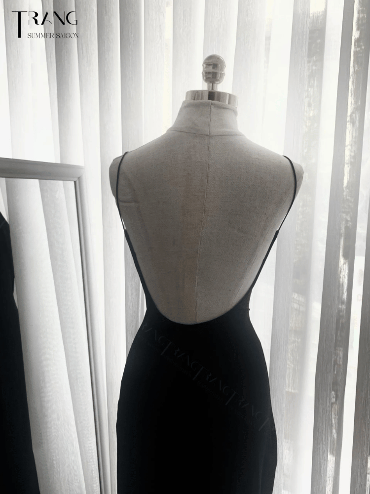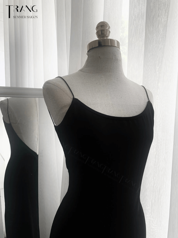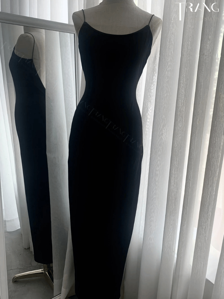 ĐẦM ÔM DÁNG DÀI HAI DÂY HỞ LƯNG Màu sắc: Đen/Xám Size: S/M/L