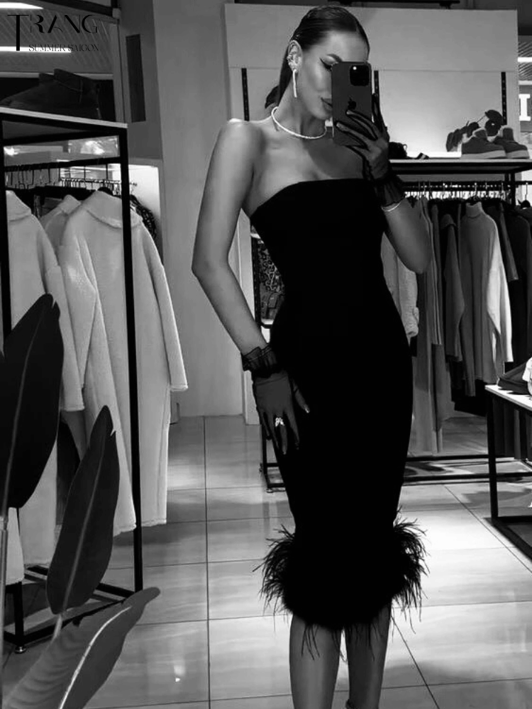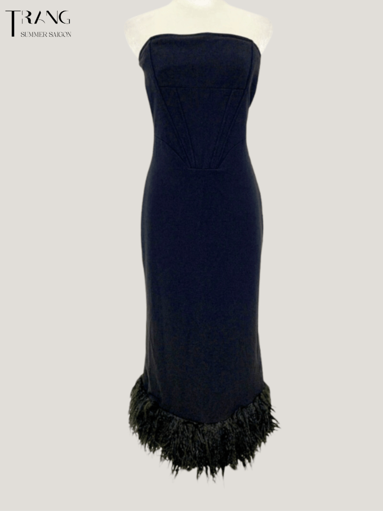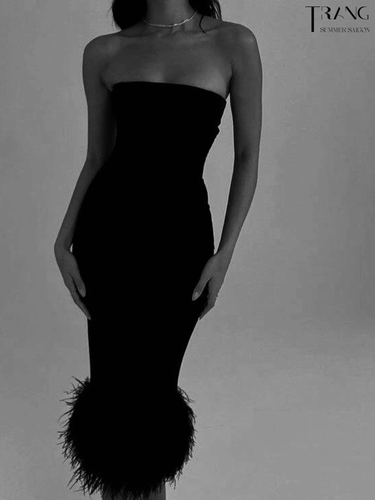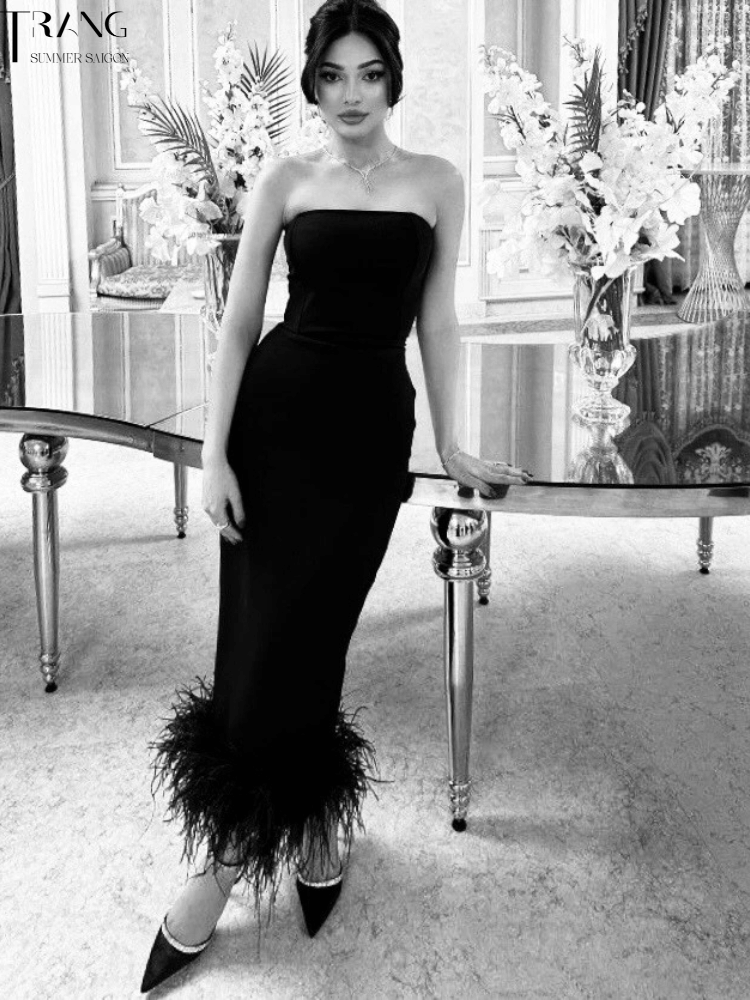 Đầm body dáng cúp ngực khoe vai hờ hững kết hợp cùng lông vũ phần dưới giúp bạn thật duyên dáng. Chất liệu : thun cotton co giãn mềm mịn mát Số đo tham khảo : mẫu 1m7 / 82-64-98cm mặc S