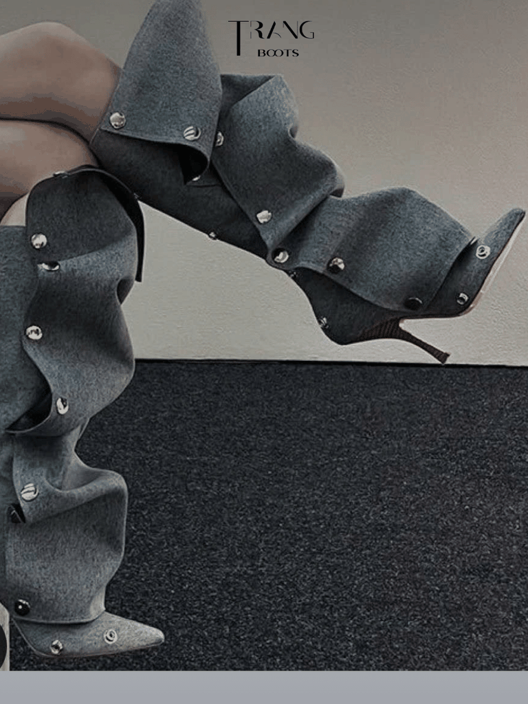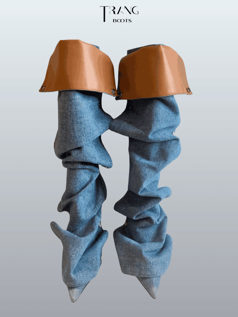 Knee Boots phối nhún denim – cá tính & thời thượng