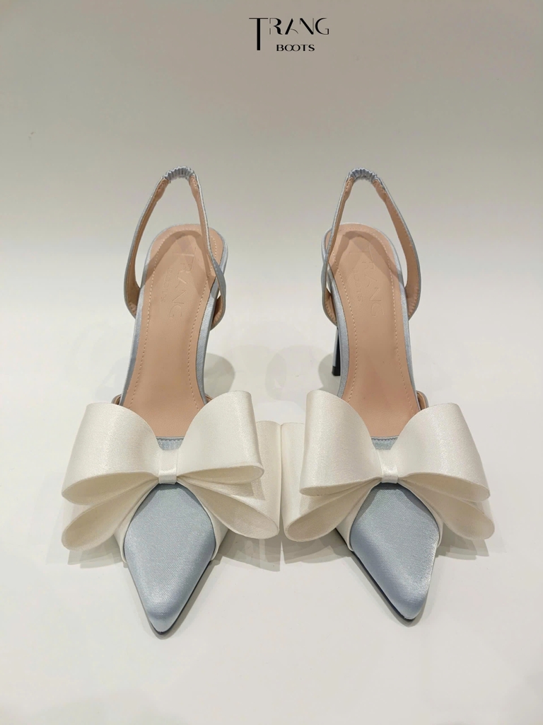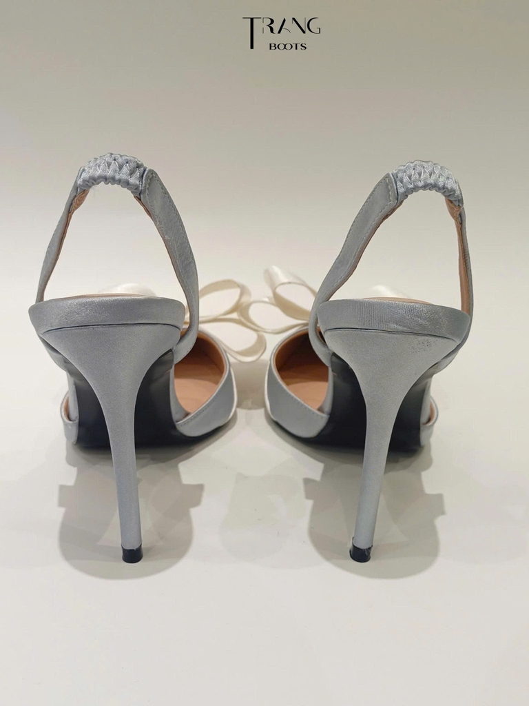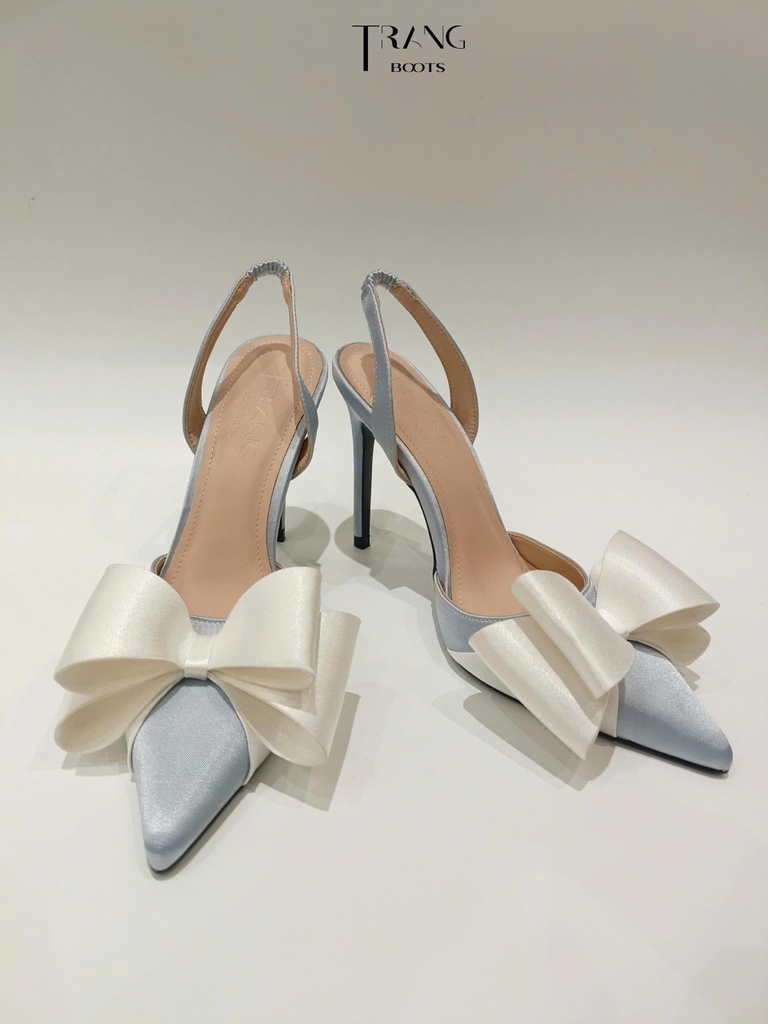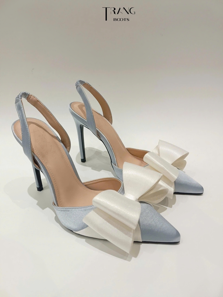 GIÀY CAO GÓT LISA MŨI NHỌN LIGHT GREY PHỐI NƠ TRẮNG SANG TRỌNG PHIÊN BẢN 4.0