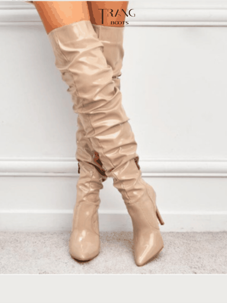 Boots dài qua gối thời trang, form ống nhún nhăn sành điệu phù hợp nhiều trang phục từ sexy đến cá tính.