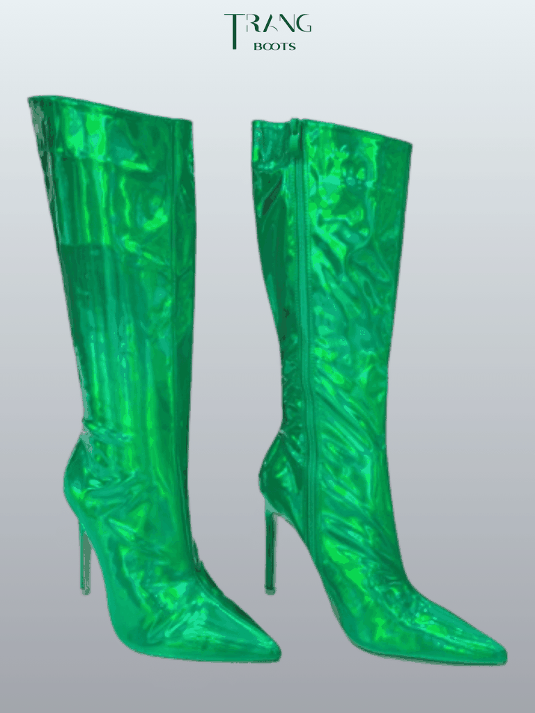 Boots dài dưới gối với gam màu metallic biến bộ trang phục đơn giản trở nên ấn tượng và bắt mắt hơn.Boots dài dưới gối có khóa kéo bên hông giày giúp bạn thuận tiện trong việc mang . Mũi nhọn gót nhọn tạo cảm giác chân thon dài.