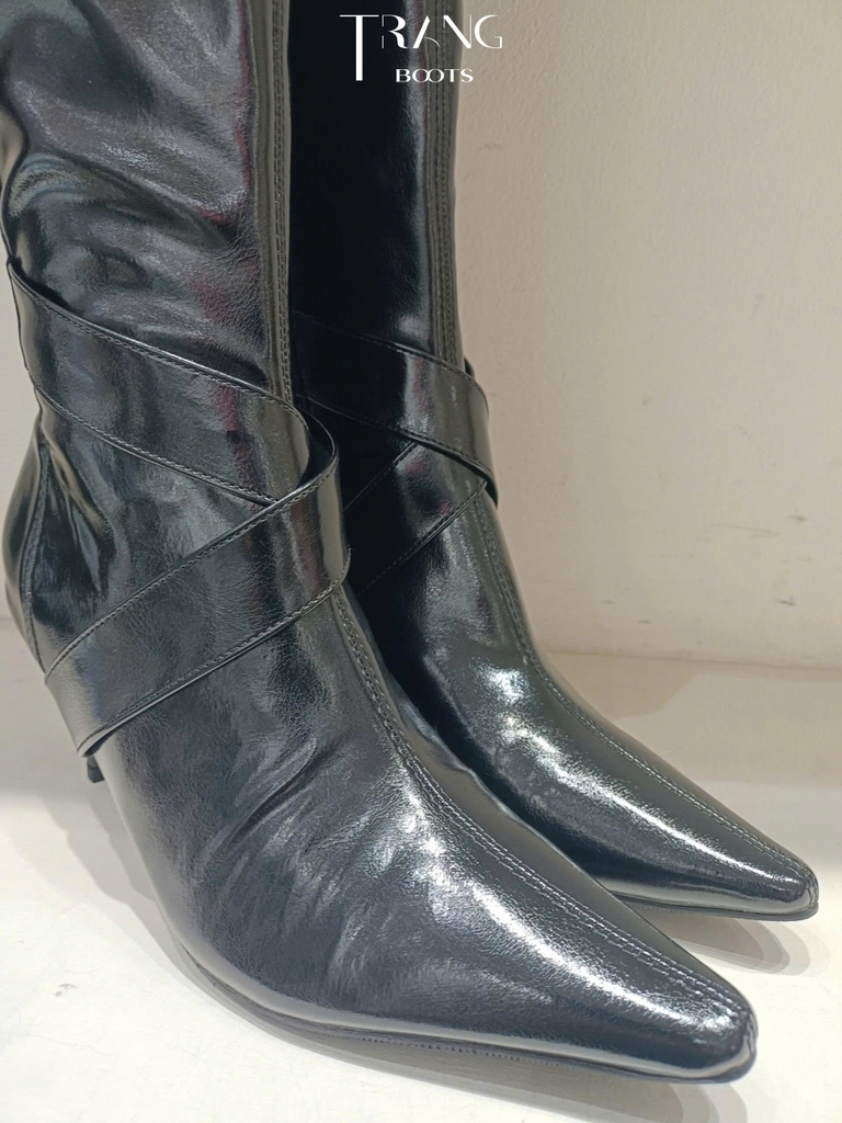 Boots cao cổ tới gối thiết kế mũi nhọn.