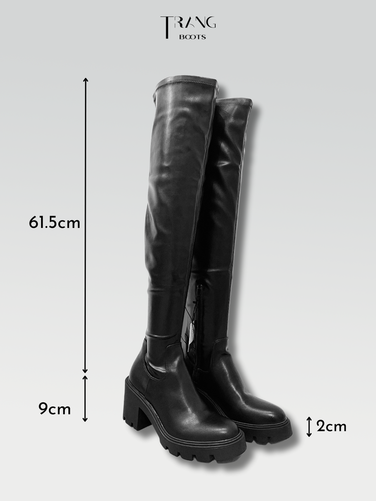 Gót 9cm, đế trước 2cm, ống 61.5cm
