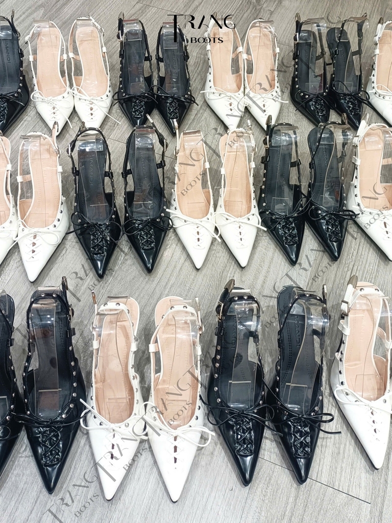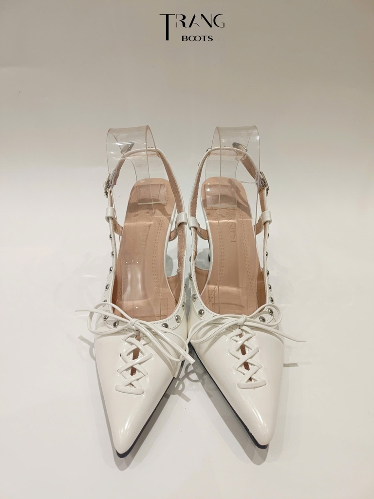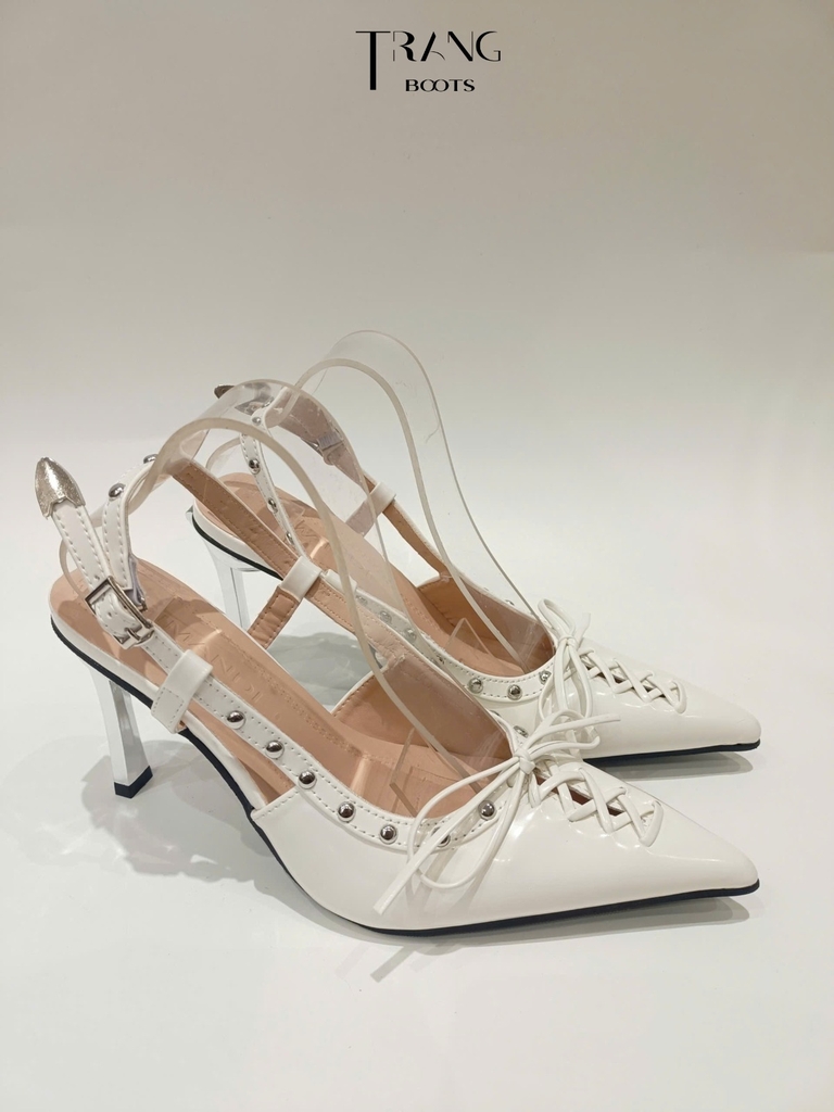 Mẫu sandal cao gót đinh tán 2026 mang đến vẻ đẹp nổi bật và đầy khí chất. Thiết kế mũi nhọn sắc sảo kết hợp gót kim loại thanh mảnh tạo hiệu ứng tôn dáng tối đa, giúp đôi chân trông dài và thon gọn hơn.