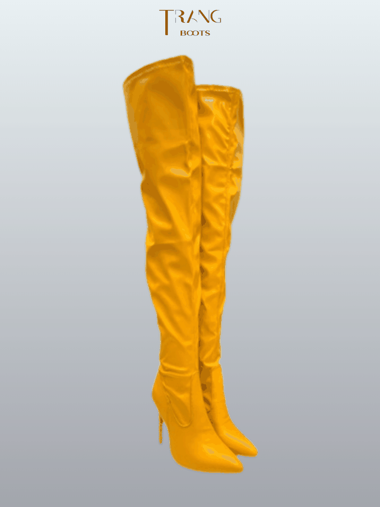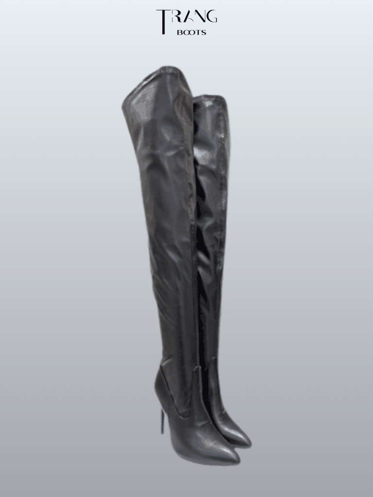 Boots dài tới đùi form ôm chân đơn giản phù hợp nhiều mẫu trang phục, có khóa kéo bên hông mặt trong .