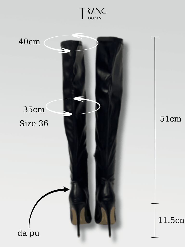 Thông số : Chiều cao gót 11.5cm, thân boots 51cm , ống boots 35-40cm ( da co giãn)