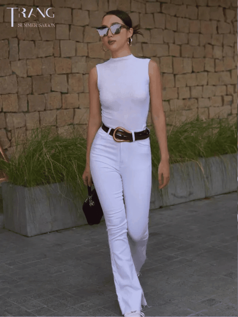 SET ÁO THUN TRẮNG KHÔNG TAY + QUẦN JEANS ỐNG LOE TRẮNG Áo thun trắng không tay được làm từ chất liệu thun đũa co giãn 4 chiều mềm mại kết hợp cùng quần jeans trắng lưng cao ống loe cực hack...