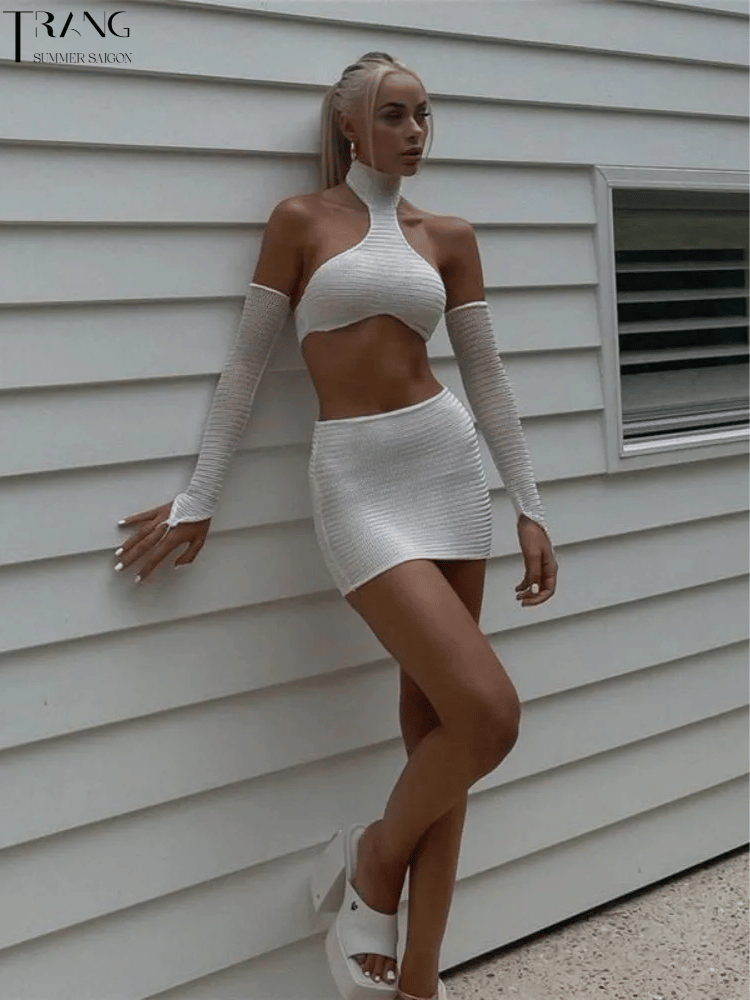 Set váy body áo croptop cổ yếm kèm bao tay lưới siêu sexy. Chất liệu : lưới dệt co giãn tốt ôm body Số đo tham khảo : mẫu 1m7 / 82-64-98 mặc size S