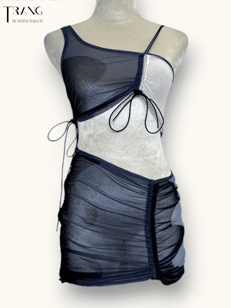 Set váy lưới rút dây siêu sexy cùng họa tiết loang màu trông thật bắt mắt. Chất liệu : lưới Màu sắc : xanh / đen Size : S M
