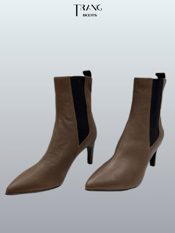 Meet the newest member of the Whitney family and a new take on the classic chelsea boot. Crafted from smooth brown leather with a timeless point-toe silhouette and covered slender high heels. The elasticated inserts and the pulling tab at the back make them easy to pull on.